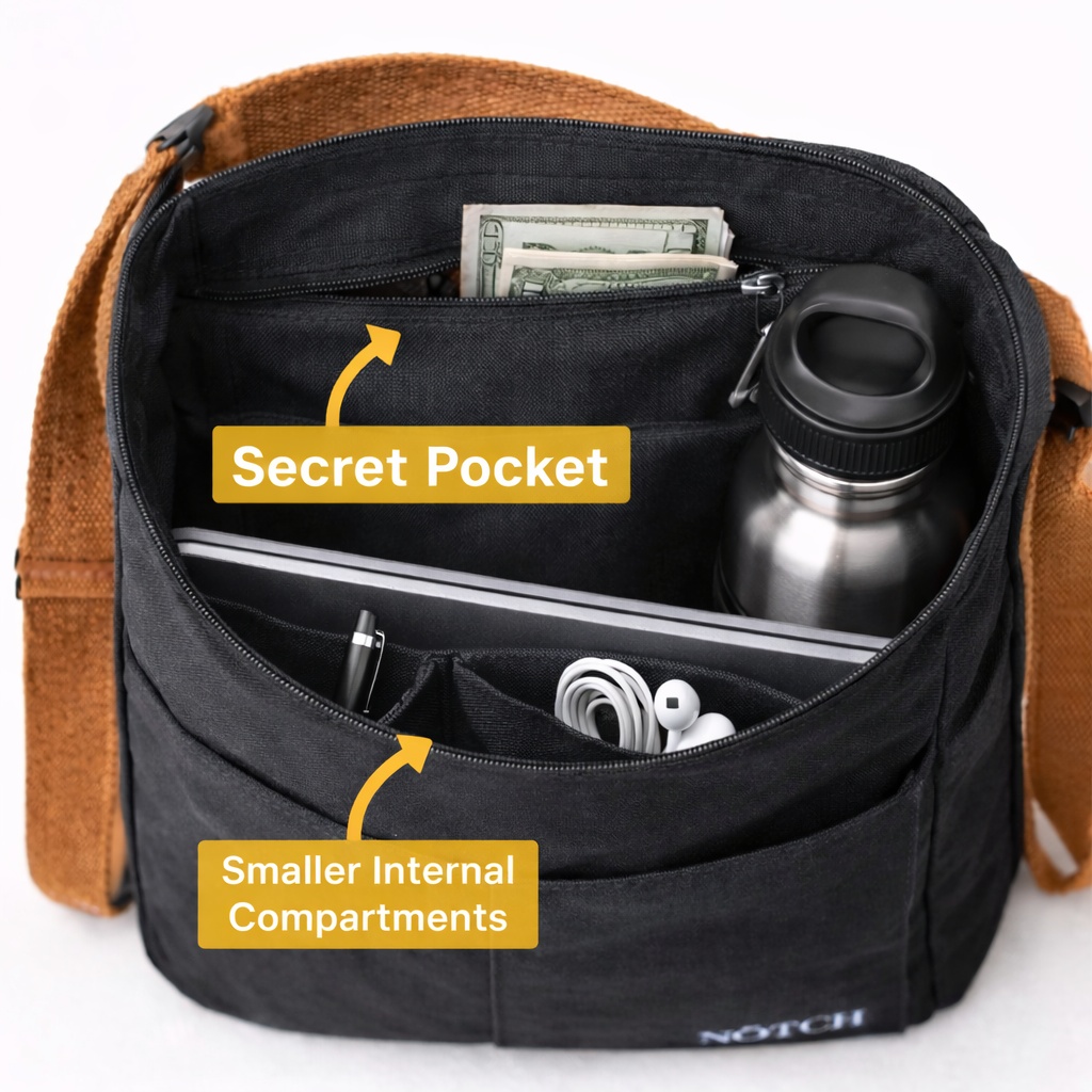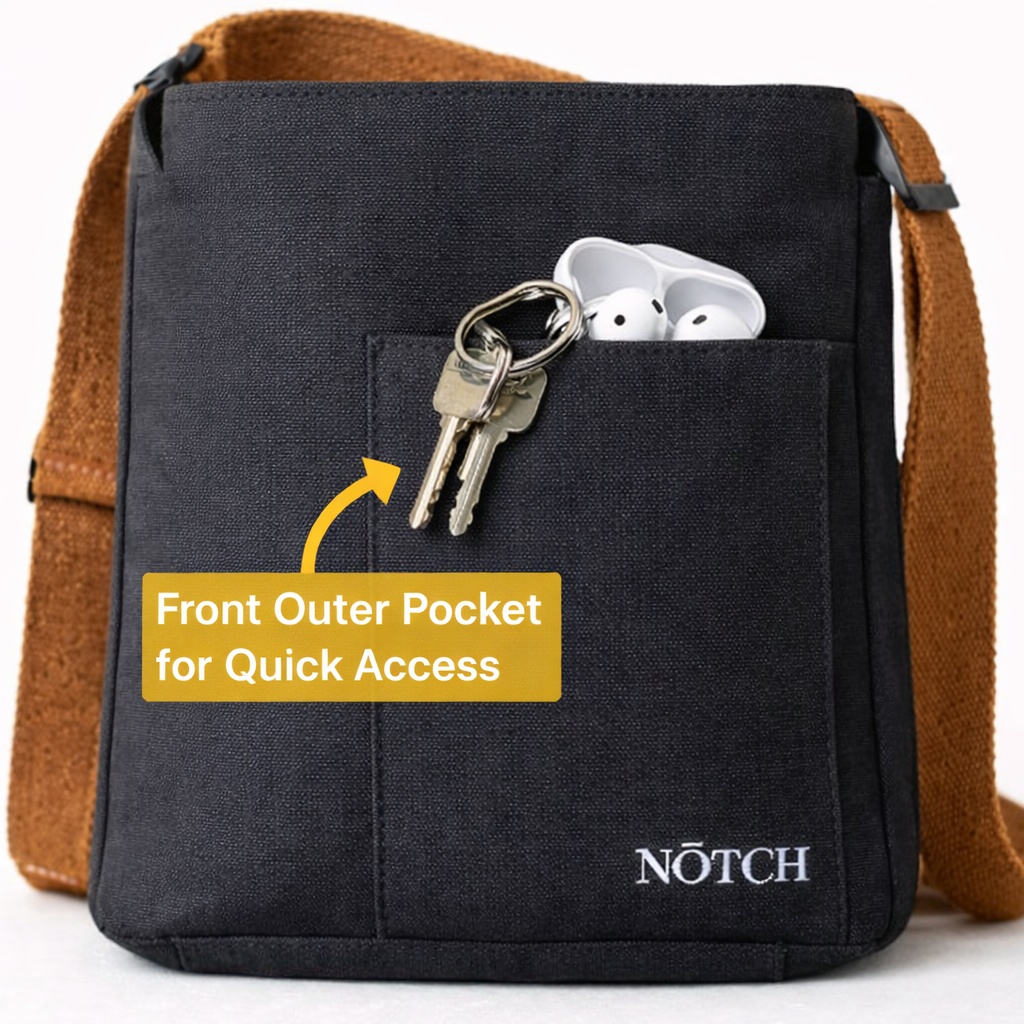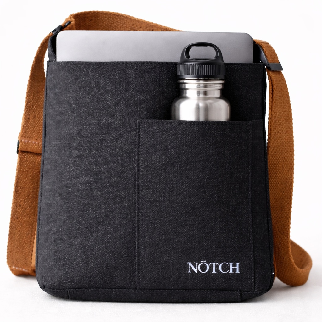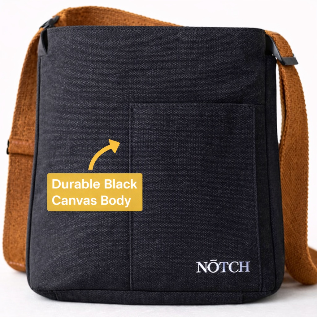 This convertible NŌTCH bag is designed for days when your schedule and carrying needs keep changing. Switch from tote to backpack in a few simple adjustments when you need hands-free comfort on a crowded metro or while cycling. Inside, a padded sleeve securely holds laptops up to 17 inches. Clean black canvas, brown cotton straps, and a front quick-access pocket balance practicality with understated style.